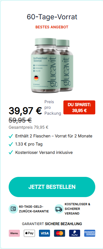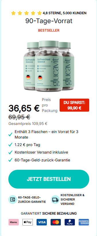 Ihre Reise beginnt mit einem Plan, der zu Ihrem Lebensstil passt – für mehr Wohlbefinden und Balance im Alltag. Glucavit unterstützt Sie dabei, Ihren Körper auf natürliche Weise zu harmonisieren und Ihr Energiegefühl zu fördern. Vertrauen Sie auf die Erfahrung tausender zufriedener Kunden und entdecken Sie, wie kleine Schritte zu großem Wohlbefinden führen können.